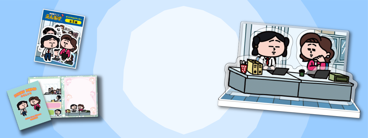 島根県出身の縁結(えにし ゆう)くんが、都内で働く様子を描いたショートアニメ。 オフィスあるある、MBTIアニメ、職場の女子トイレあるあるなど、見ればちょっとだけ、仕事の悩みが軽くなる…かも? 日常会話で使いやすいものから、「謝辞」「なにごとぞ」「おごそ」などの名ゼリフまで、全24種をラインナップ! 主人公の縁結(えにし ゆう)くんをはじめ、いちえさん、縁起(えにし ゆき)ちゃん、しらがみ常務など、アニメでおなじみのキャラクターたちが、様々な表情やポーズで登場! えんむすに関するお仕事のご依頼やお問い合わせはこちらから。