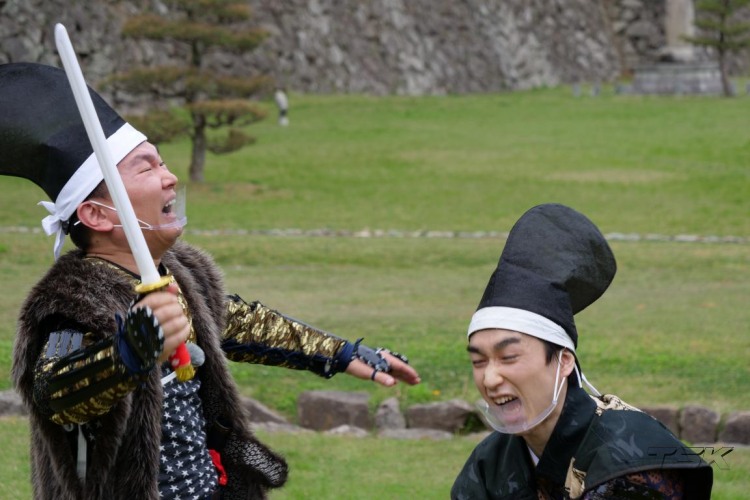 2022年05月25日放送“真剣”。武士の世界では本物の刀で命を取り合う…つまり生死をかけるほどの気持ちで物事に取り組むこと。かまいたちの掟のロケももっと“真剣”に、命をかけて取り組んで欲しいという事で武士の世界で本当の”真剣”を学ぶ。やって来たのは国宝・松江城。400年前の世界から来た武士、堀川茶々丸さんから武士の心得を習い、殺陣(たて)に挑戦!濱家の命を狙う武士・山内と、濱家の側近・茶々丸の一騎打ちという設定を演じる。