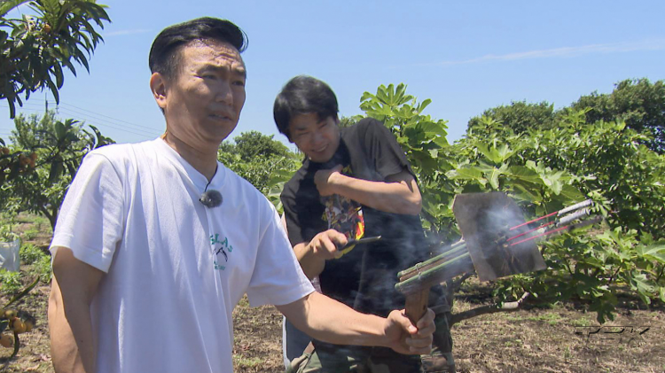 2024年07月24日放送甘くて新鮮なとれたてフルーツをたべよう!東京ドームよりさらに広い、広大な敷地のフルーツ狩り農園にやってきたかまいたち。新鮮な「桑の実」や「ビワ」を味わうも、残念なお知らせが…。今年は野鳥に食べつくされそれ以上の果物が無いという!フルーツのお礼に野鳥を追い払うお手伝いを買って出るかまいたち。ロケット花火を使った「銃」を放つと、その火の粉を盛大に浴びる山内。さらに、“バッタらしき虫”にロケは大混乱!